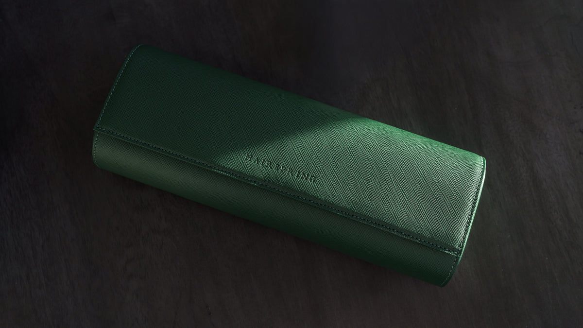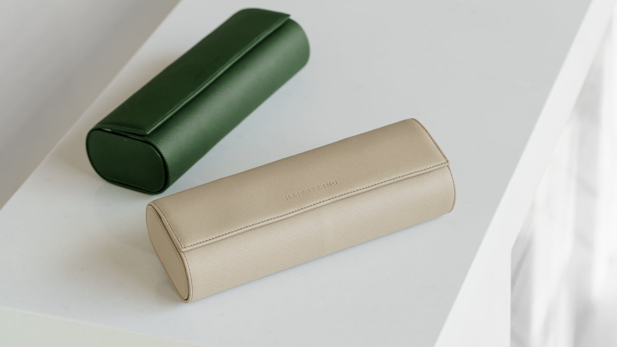 Crafted from premium full-grain calfskin, our Saffiano 4 watch roll bears the signature crosshatch pattern in very high resolution and deep texture. Saffiano leather, originally used in high fashion, is famed for its durability while providing an elegant look. Opening the three snaps reveals a genuine Alcantara lining and removable pillows for easy watch access. Large enough for storing a small collection yet small enough for travel, the 4-watch roll is a versatile option of the highest quality.