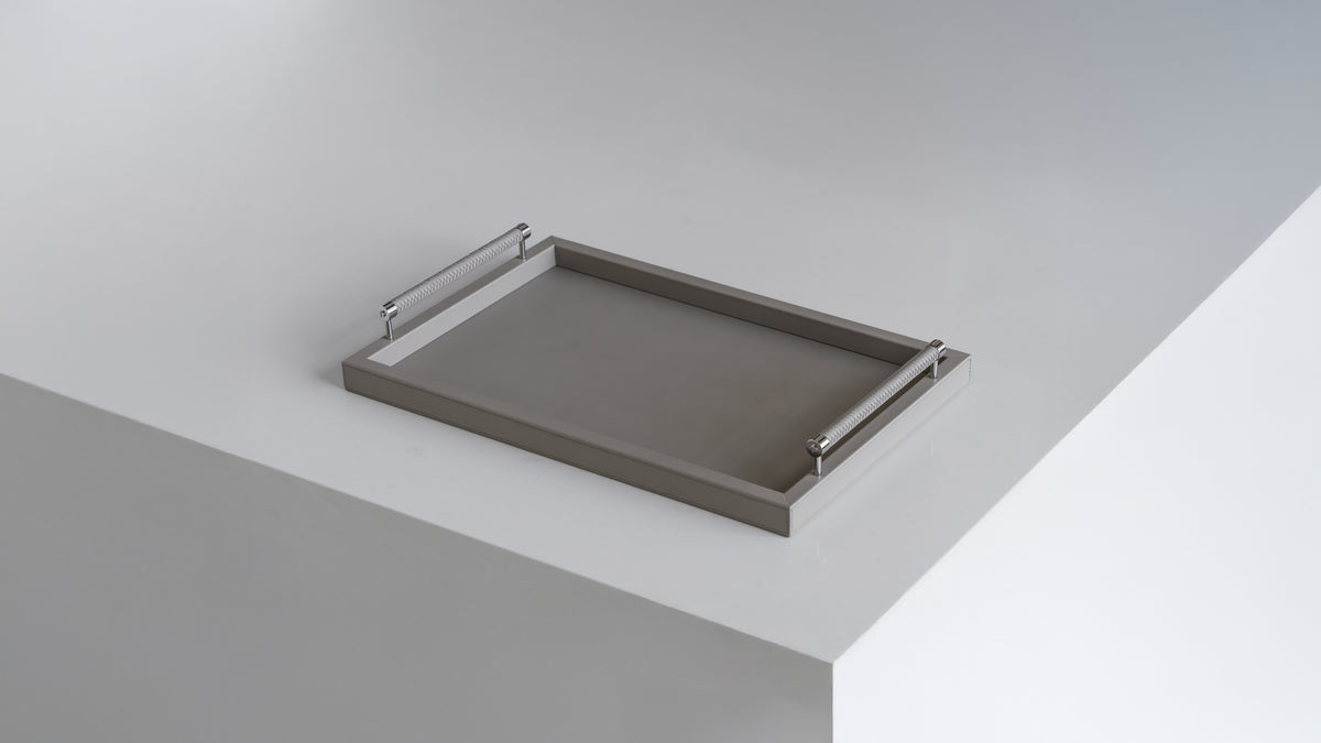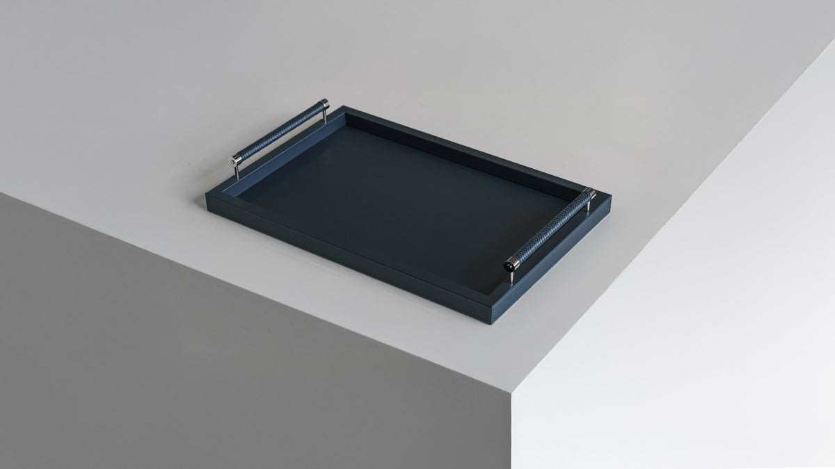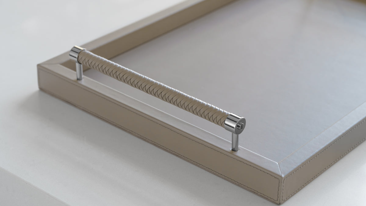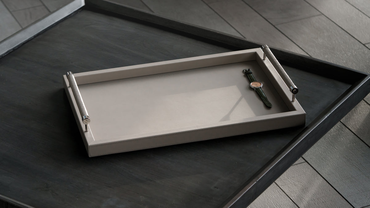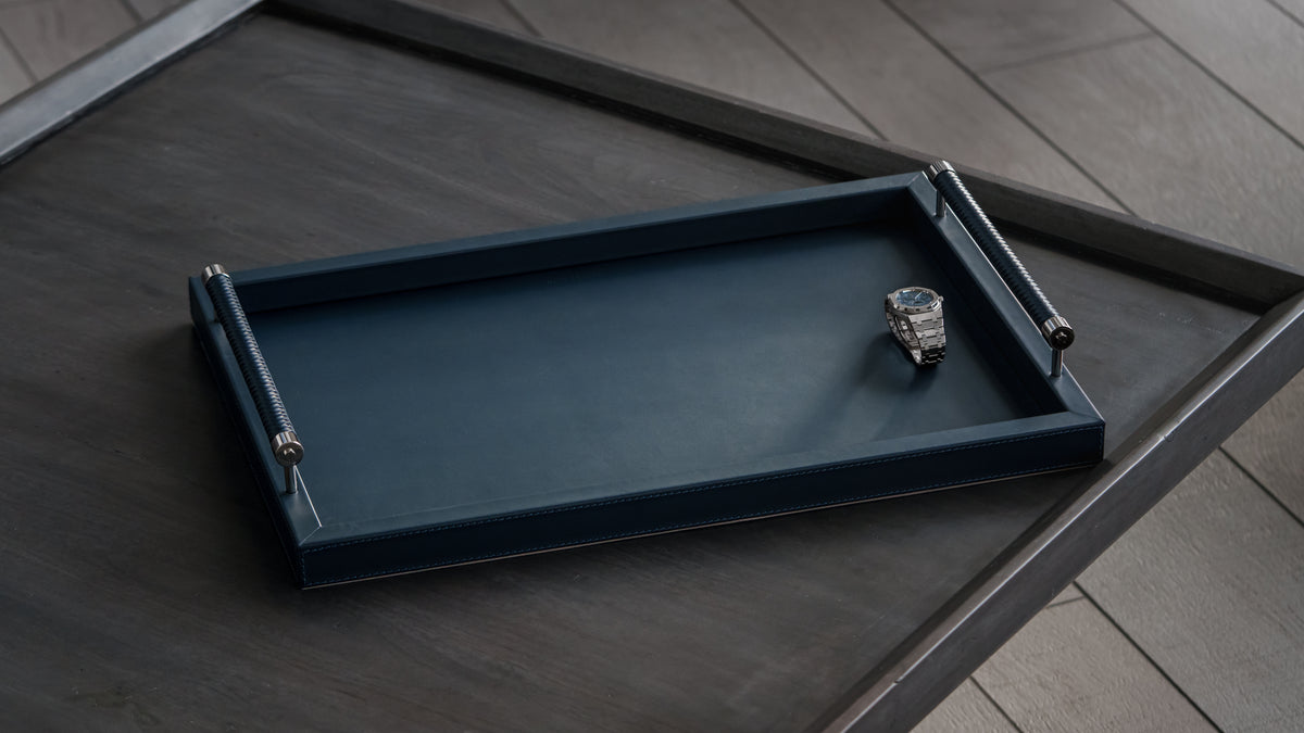 Our exhibition trays are designed to be the ultimate option for showcasing your collection. Unlike valet trays, exhibition trays are made with social occasions in mind, providing a safe and luxurious place for presenting and discussing collections. Handcrafted in Italy and made of the finest materials, these trays both encourage social collecting and serve as a safe, beautiful display of your work at home. Details such as woven leather handles and mirror polished steel supports make these a joy to view or touch.