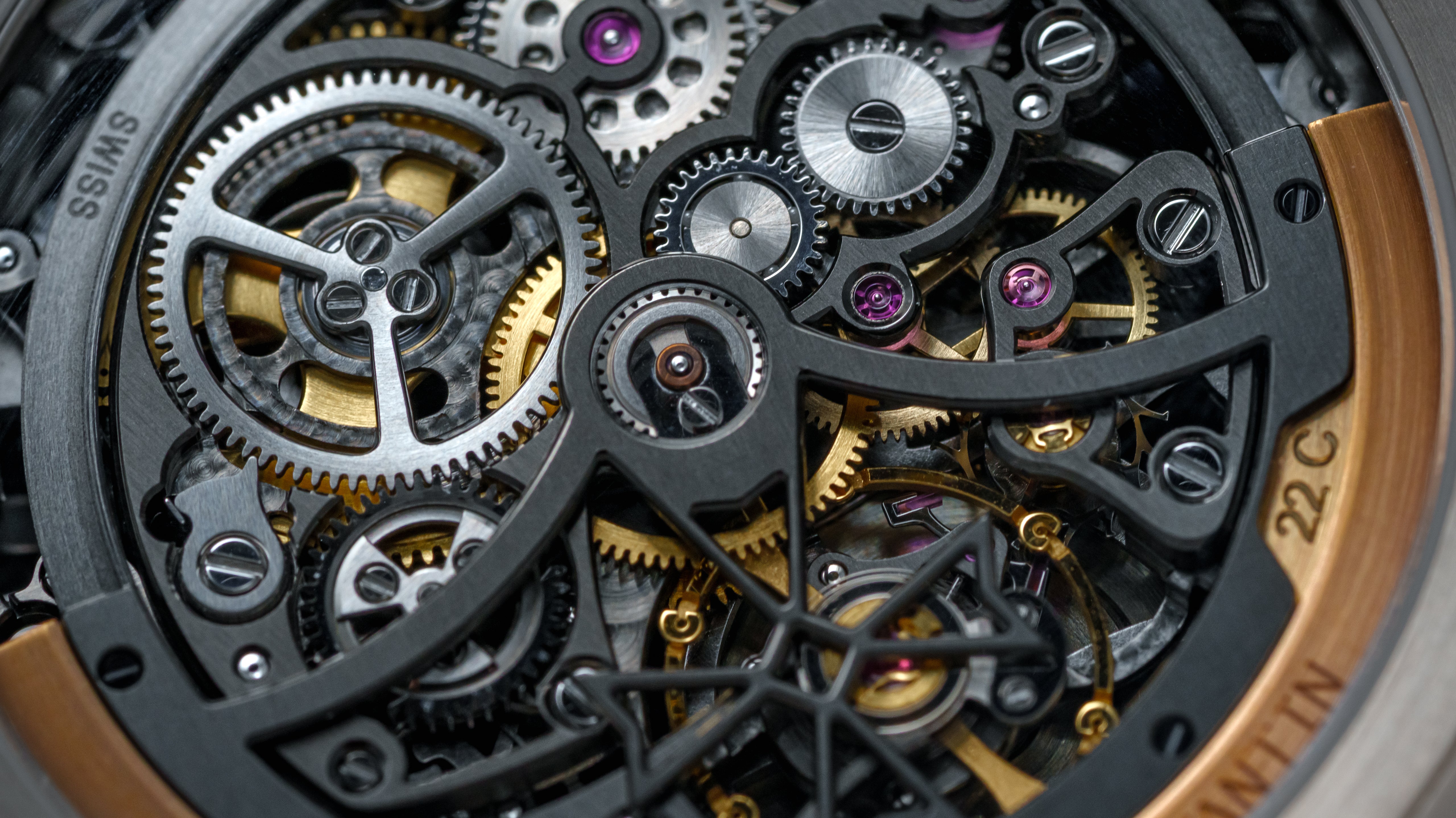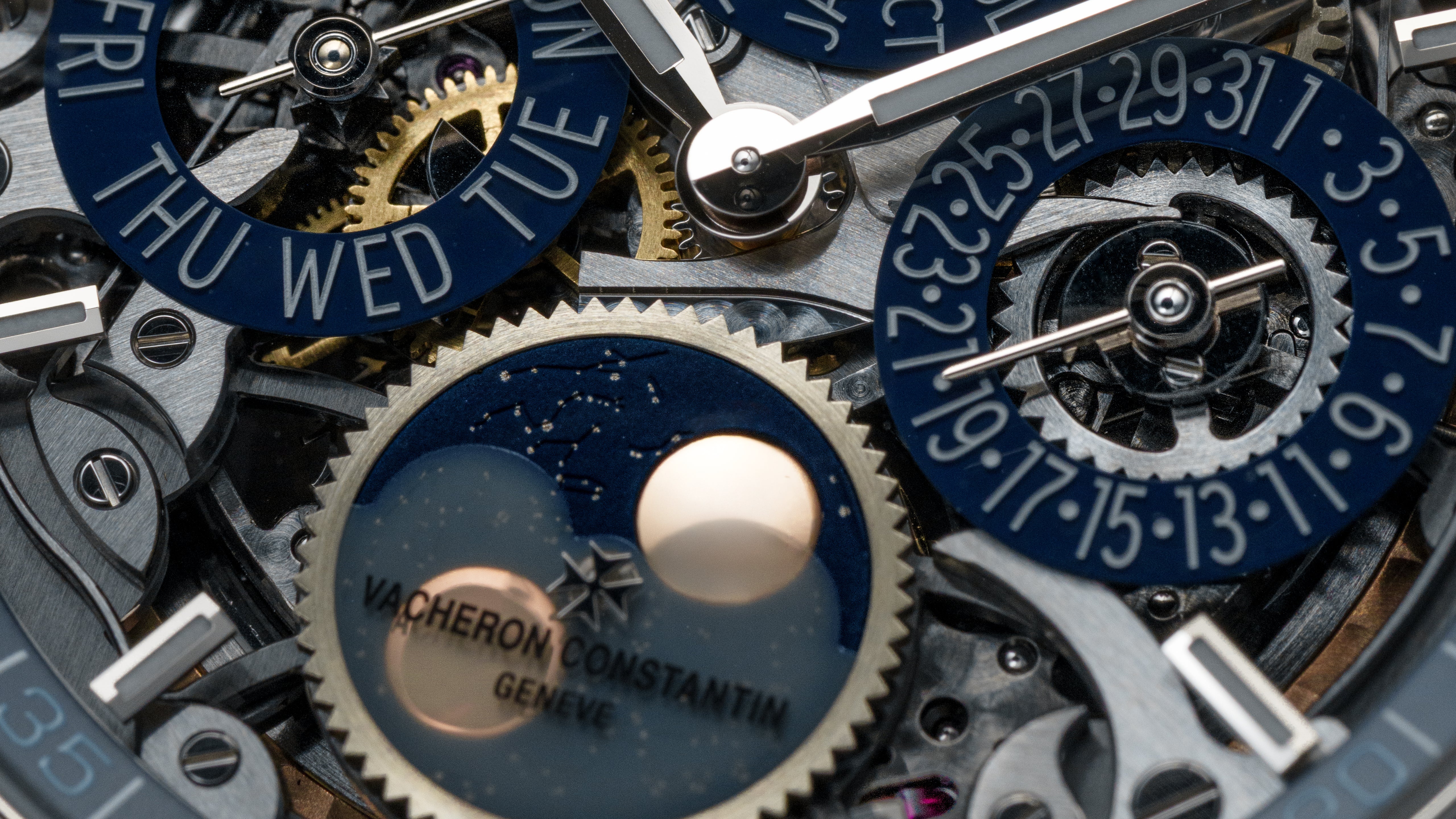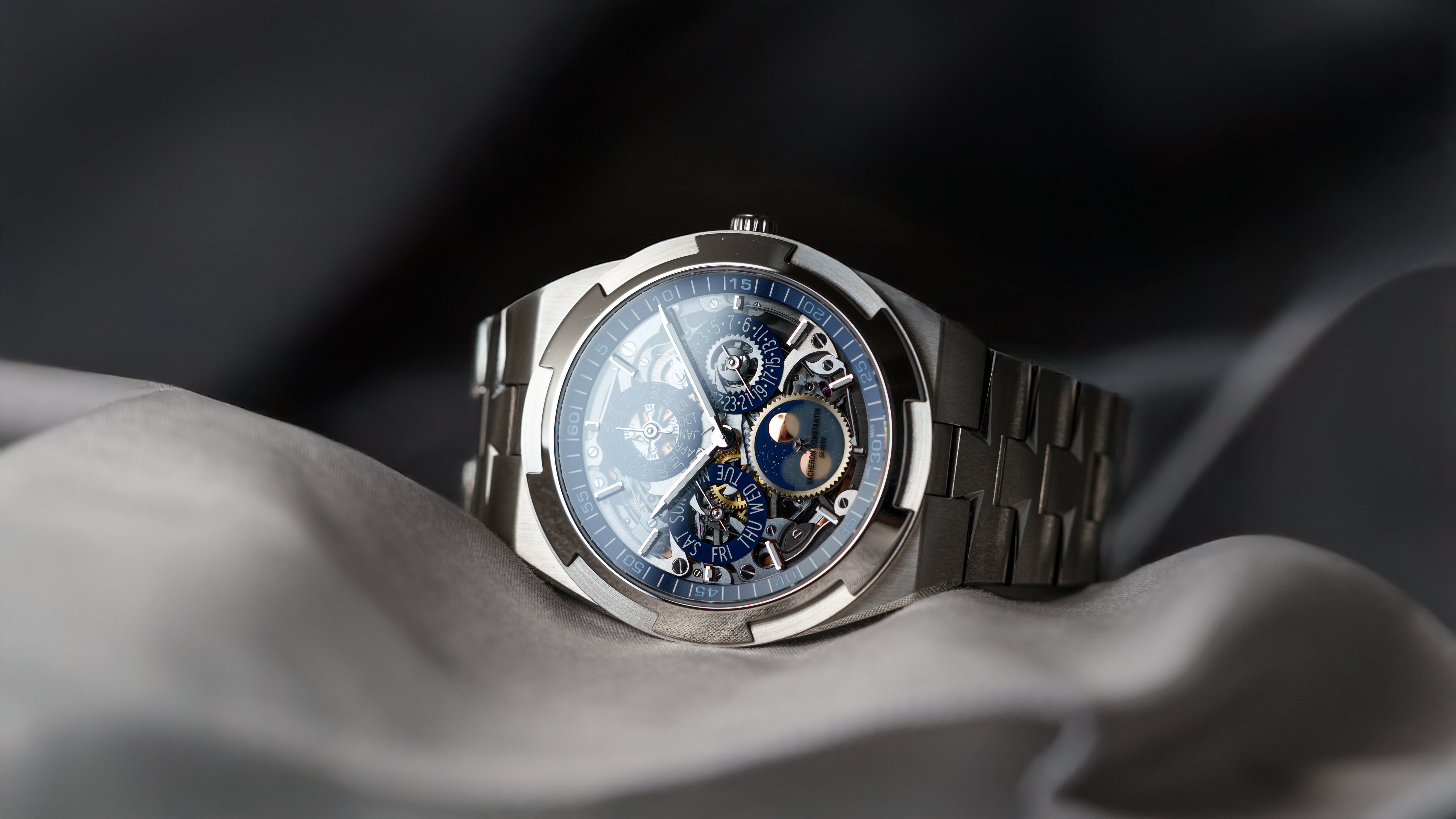 A ref. 4300V/120G-B946 Overseas Perpetual Calendar Skeleton, the culmination of VC’s integrated-bracelet sports watch and ultra-thin perpetual calendar history. The Overseas line, born of the legendary 222, has debuted numerous complications over its three generations, but was only first offered as a perpetual calendar in 2020. Vacheron built upon their storied 1980s ref. 43031 Perpetual Calendar, forming a bridge between two highly successful threads of their history by evolving the same 1120 QP movement. Here, extensive skeletonization opens up that 1120 QP for a glimpse of Vacheron Constantin’s utmost technical and finishing ability, deserving of the Geneva Seal it proudly wears, within the sporting Overseas case.