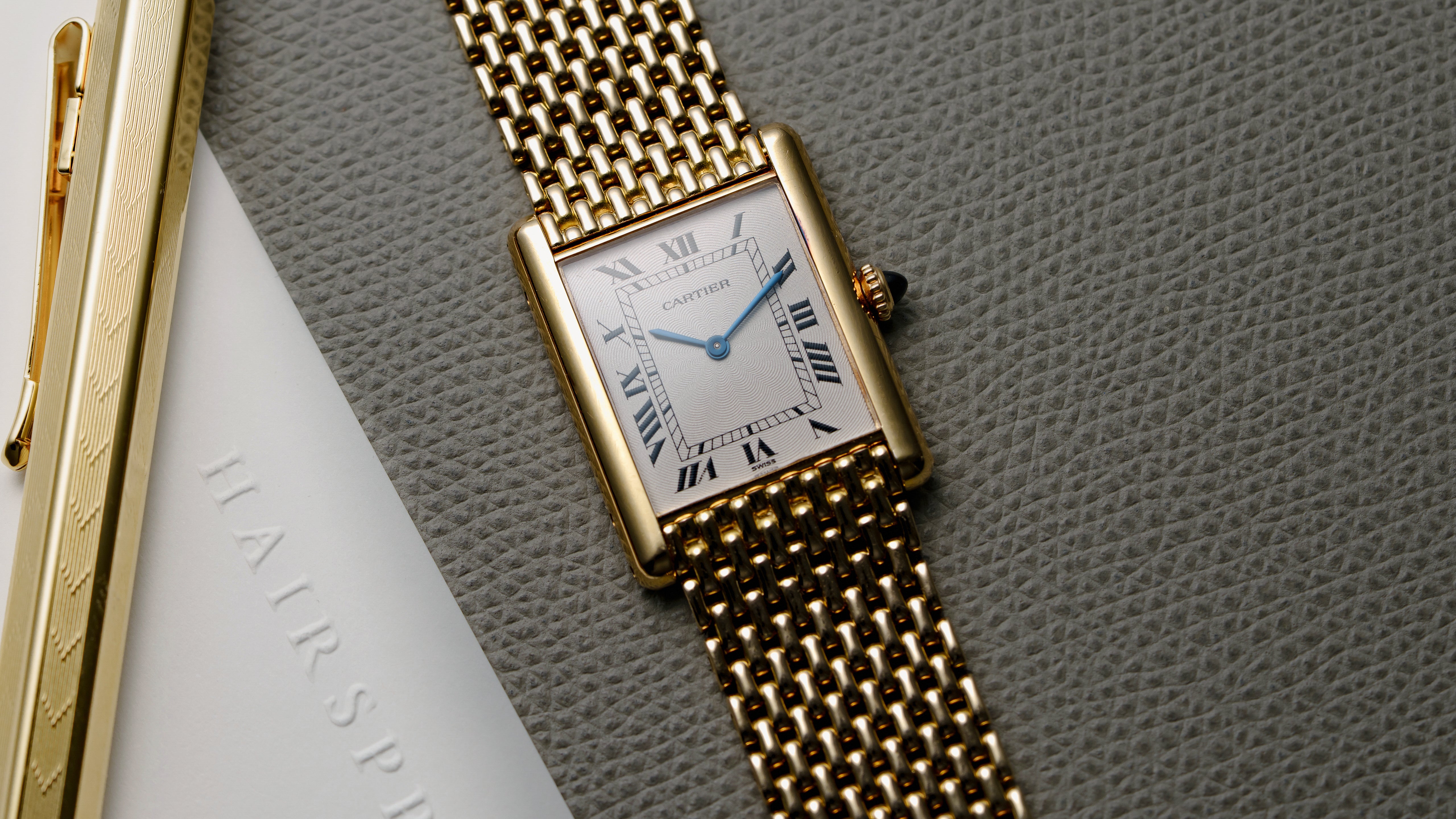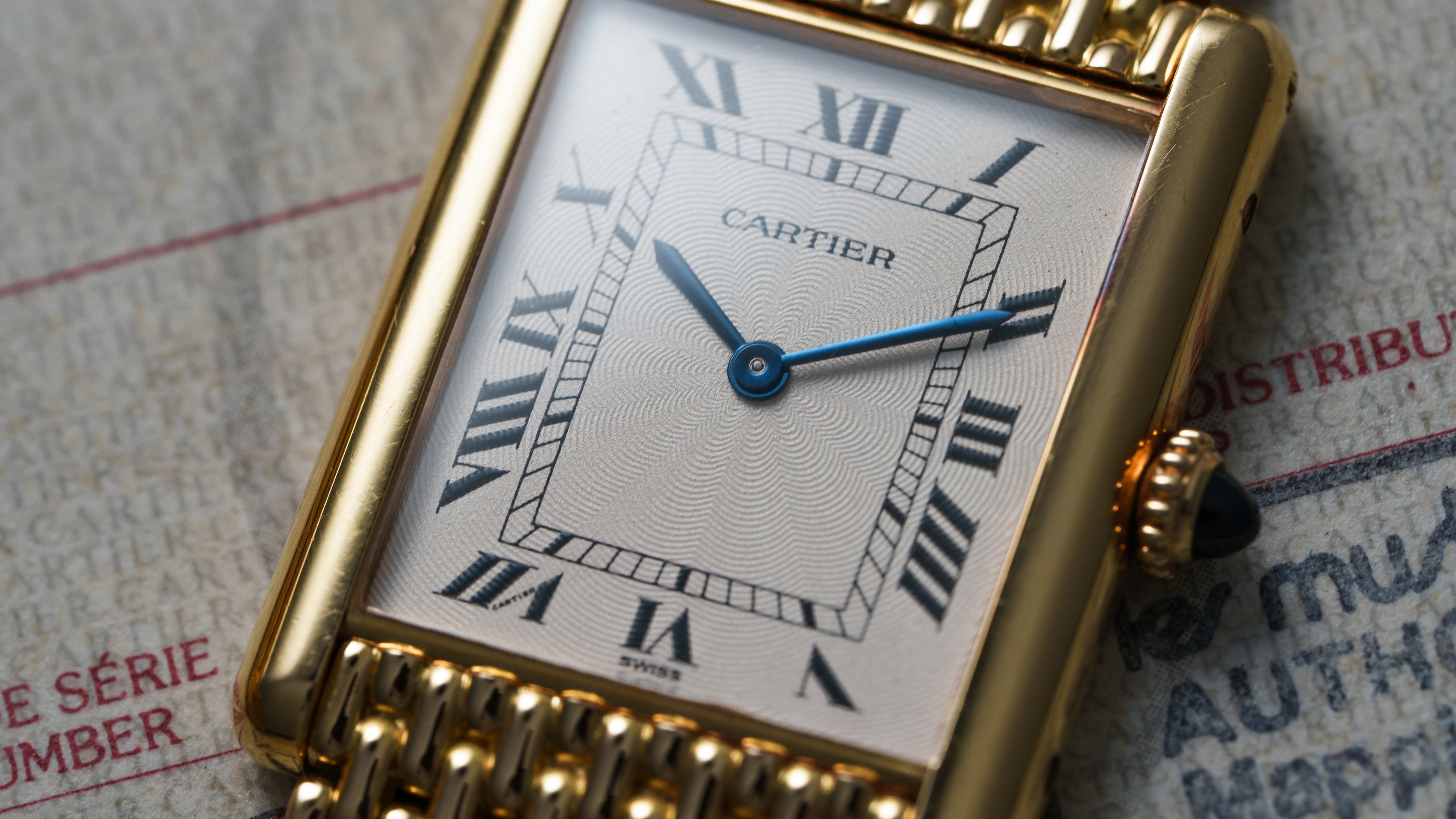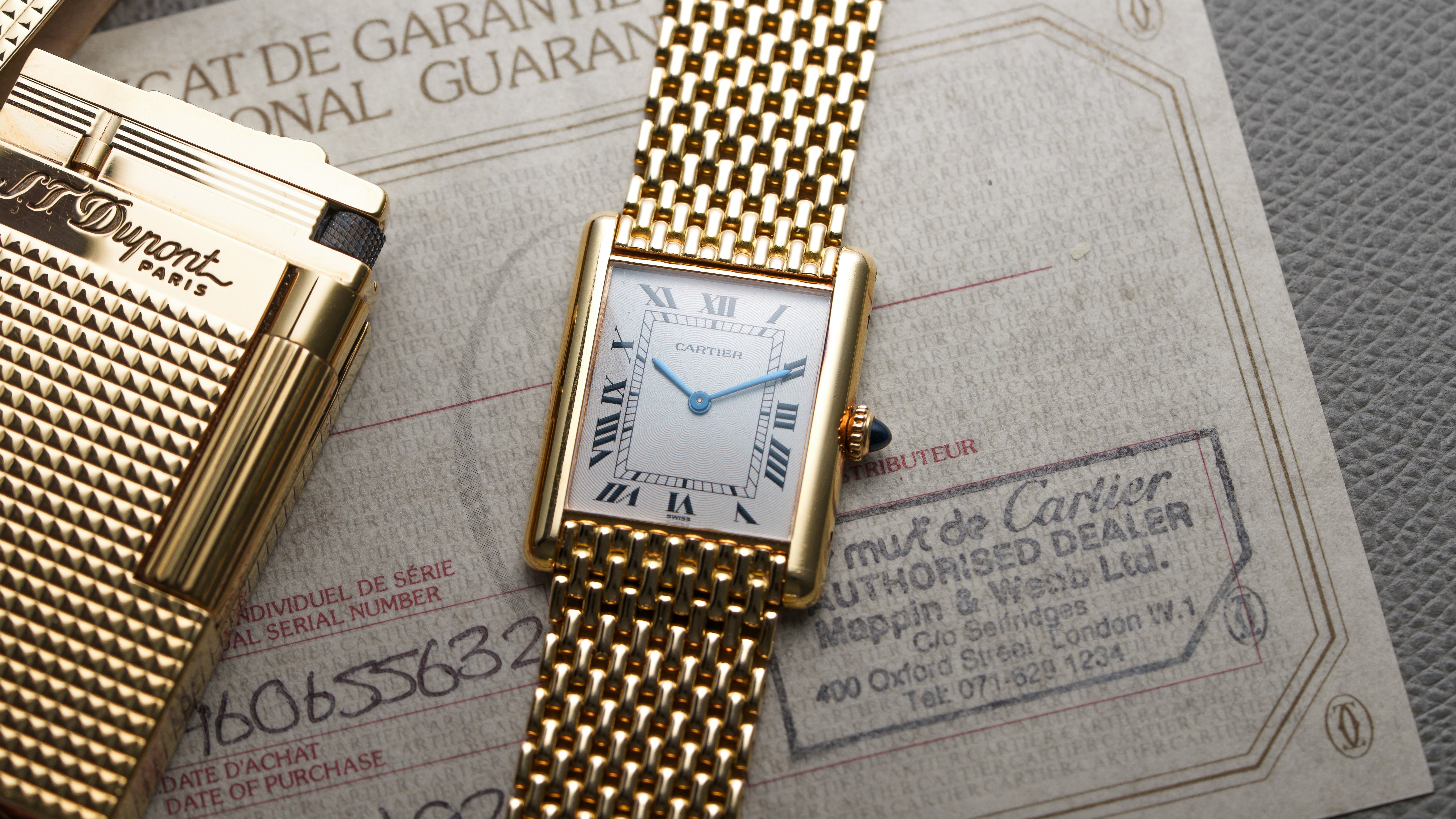 A ref. 96065 Tank Louis Extra Plate, from 1992. The 96065 is known as the 'Pre-CPCP', the last Tank Louis made before Richemonte acquired its controlling stake in 1993. It introduced the guilloché dial to the model as well as an ultra-thin Frederic Piguet ébauche, making the case even more svelte. Only a small fraction of production was optioned by special order in the 1990s to include this Grain de Riz bracelet, which adds a refinement to the Tank and gives it its own unique personality.