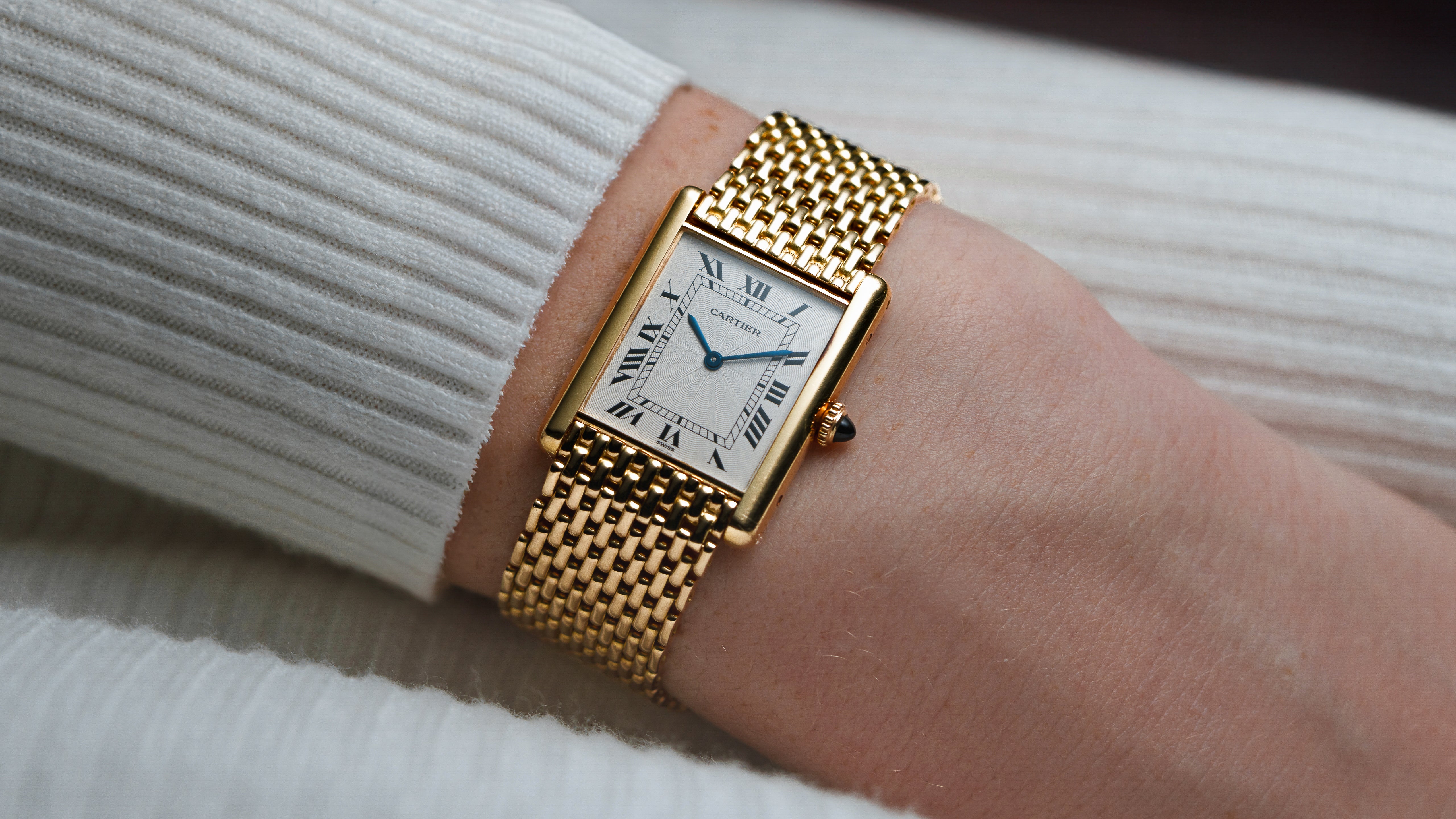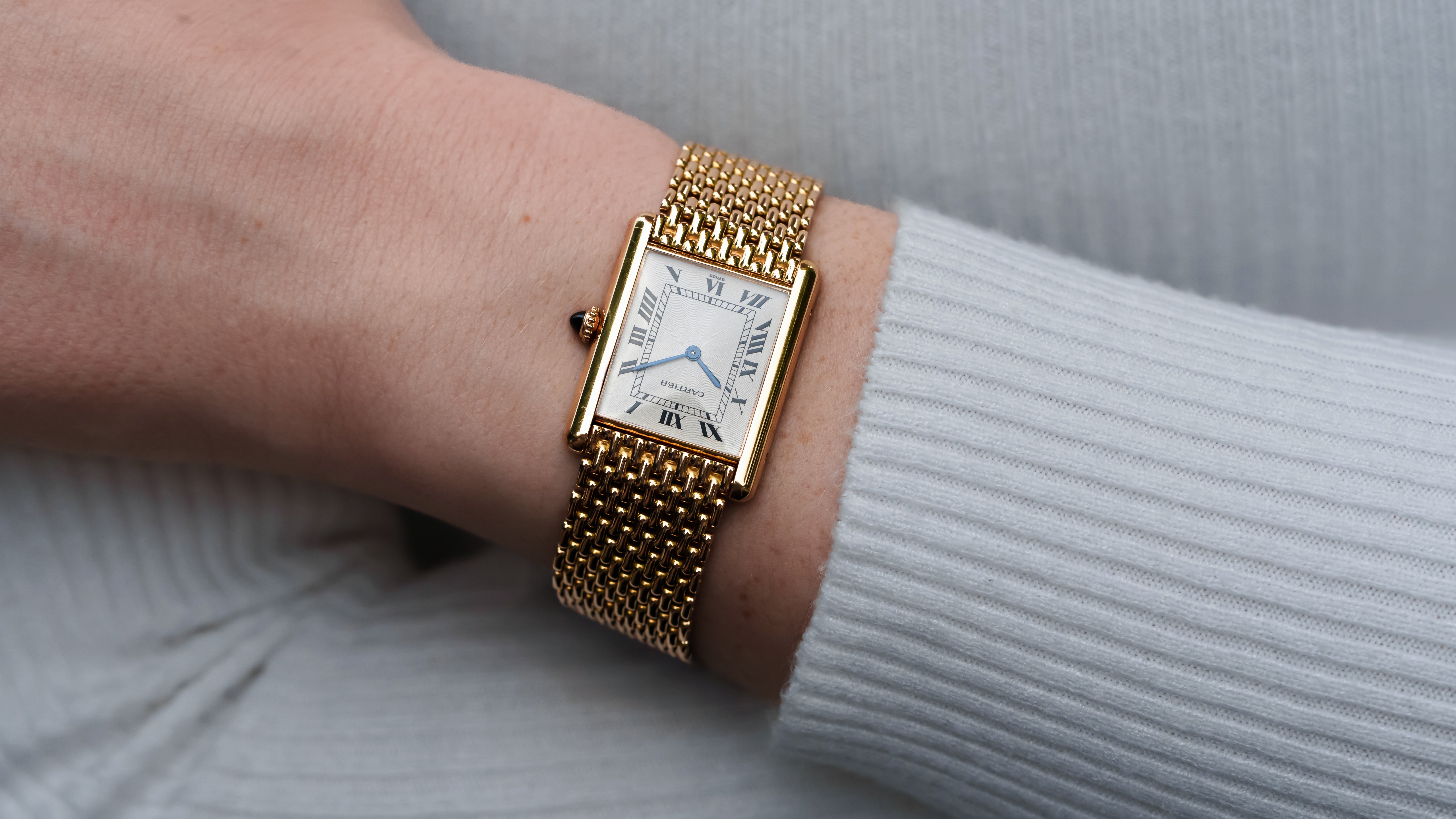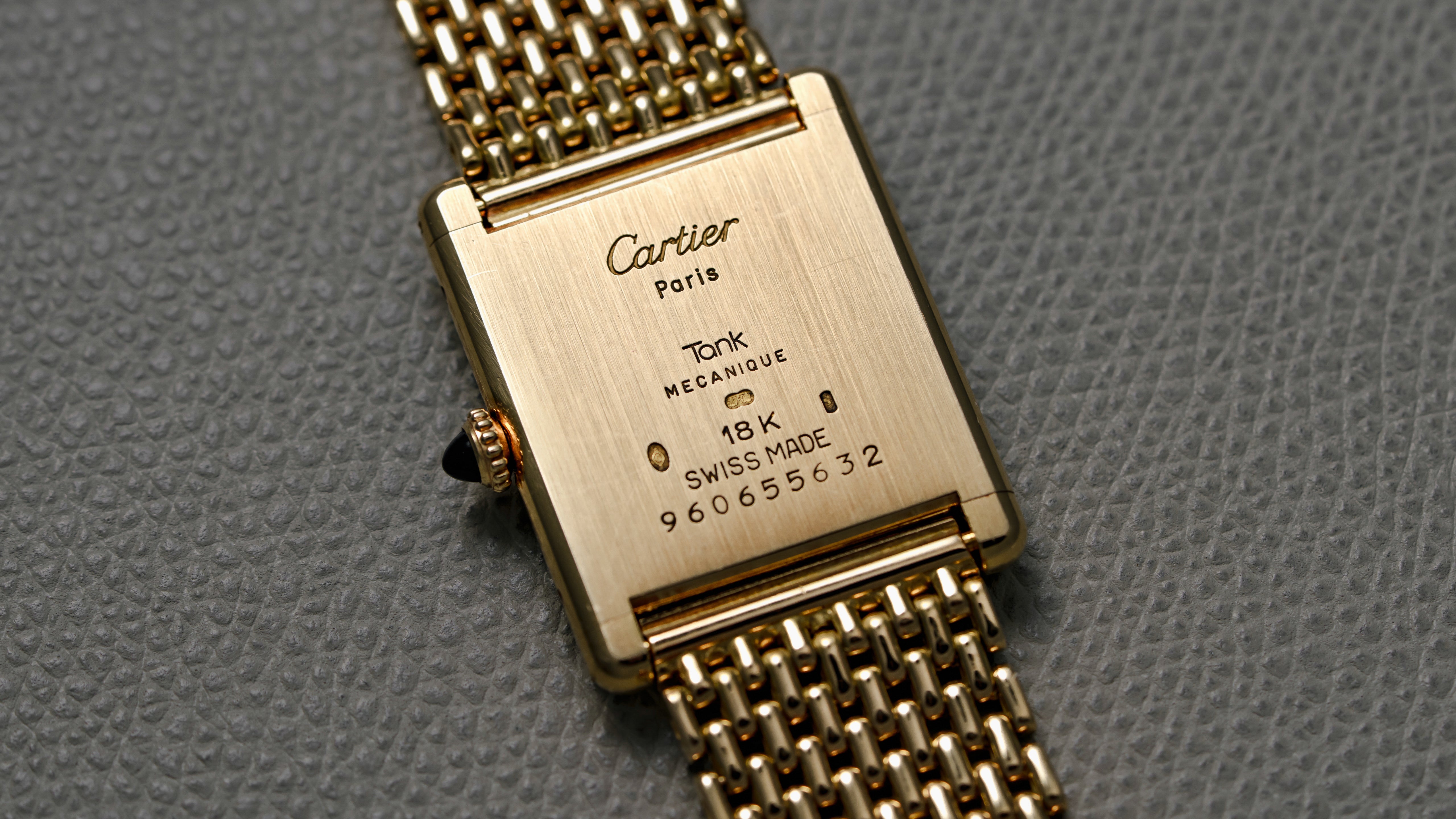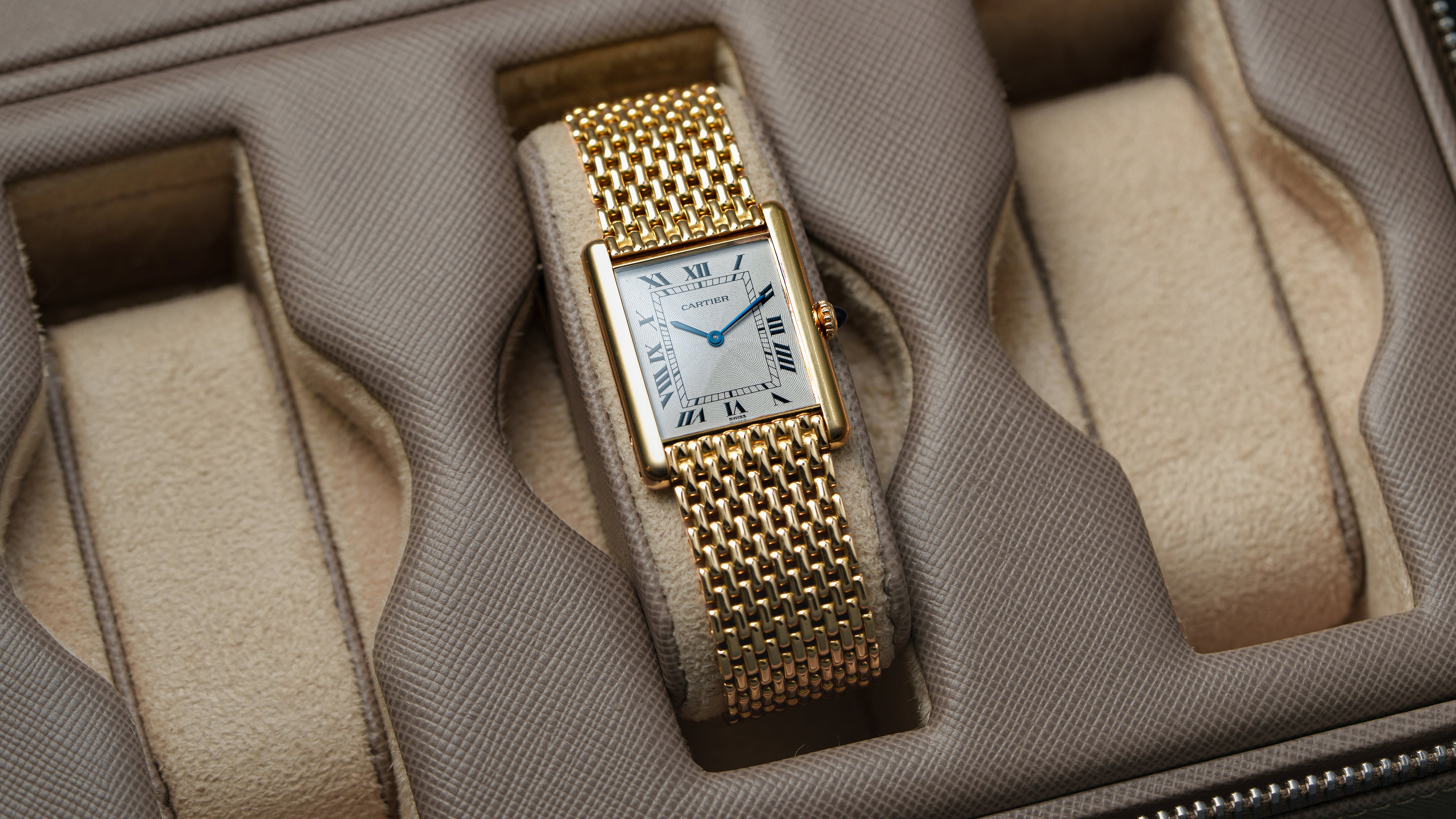 A ref. 96065 Tank Louis Extra Plate, from 1992. The 96065 is known as the 'Pre-CPCP', the last Tank Louis made before Richemonte acquired its controlling stake in 1993. It introduced the guilloché dial to the model as well as an ultra-thin Frederic Piguet ébauche, making the case even more svelte. Only a small fraction of production was optioned by special order in the 1990s to include this Grain de Riz bracelet, which adds a refinement to the Tank and gives it its own unique personality.