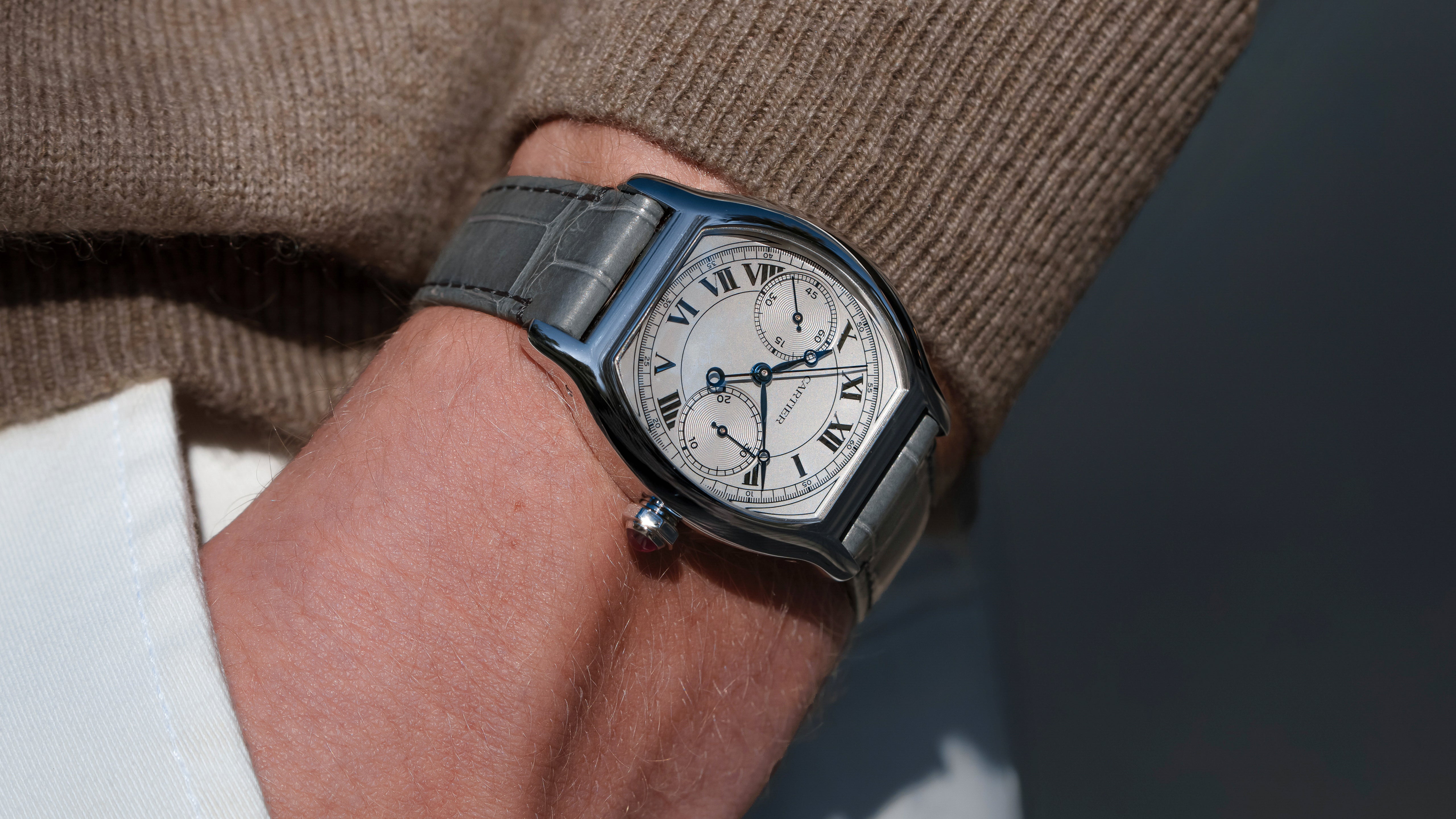 The Tortue Monopoussoir builds on a legacy that began 1928, when the first Cartier wristwatch chronograph was made in a Tortue case. By 1929, there were at least eight known Tortue Monopoussoirs, but only one in platinum. Following, in 1998’s CPCP era, Cartier brought in THA to bring back the Tortue Monopoussoir in a very small production. This is the third release of the Tortue Monopoussoir which leans closer to the vintage release than ever before. This Privé nods to the original vintage case, 34.9mm in diameter with 43mm of length including lugs (it wears like 35.5). The measurement that is most impressive, however, is vertical, just 10.2mm thin. Cartier prioritized thinness over chronometry or reserve, which, for this shape, makes the watch stand out amongst peers. It is one of true very thin contemporary watches of any manufacture. The design is respectful, but updated.